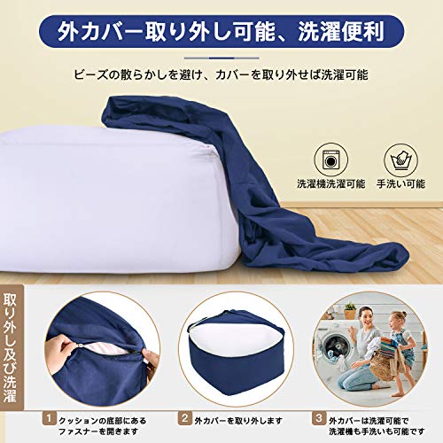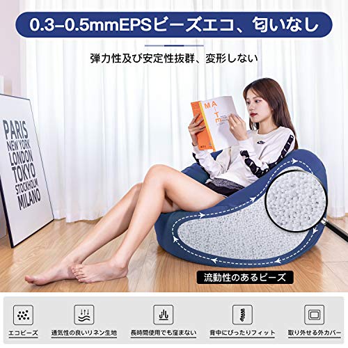 【自由にスタイルを作り、ゆったりと寛ぎます】:ビーズクッションはエコで健康的な直径0.3-0.5mmのEPSビーズで充填されています。極小のビーズは流動性と弾力性があります。座ると背中をしっかりと支え、体にピッタリフィットします。体をリラックスさせ、疲労を和らげることができます! 本を読んだり、テレビを見たり、パソコンで勤務したり、スマートフォンを弄ったり、寝転がったり、好きなように使えます。