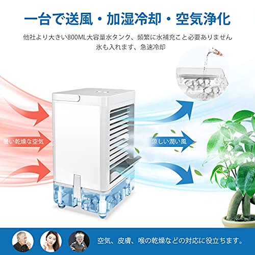 冷風機 冷風扇 扇風機 卓上冷風機 ミニクーラー 送風 加湿冷却 空気浄化3in1 800ml大容量 5000mAh電池 風量ミスト
