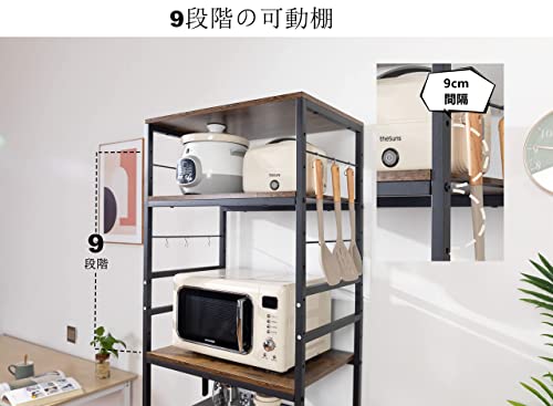 【ユニークなデザイン】:脚には足の高さを微調整できるアジャスターが付いており、凹凸のある場所でも安定して使用できます。電子レンジラックの幅約80cmの省スペース設計。開放感を与える視界を遮らないフレームデザイン。