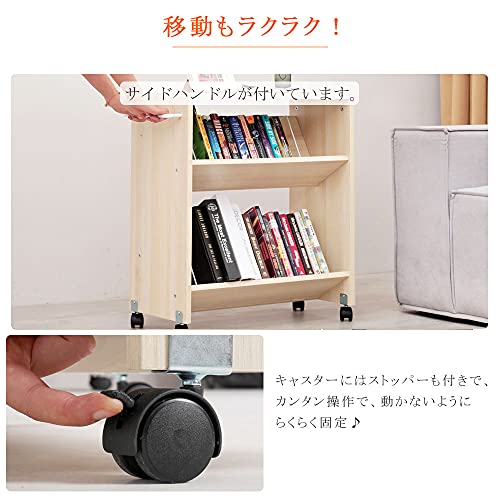 本棚 キャスター付き 低い ワゴン ファイルワゴン おしゃれ 2段 移動式 可動棚 幅60×奥行き30×高さ69cm スリム