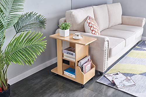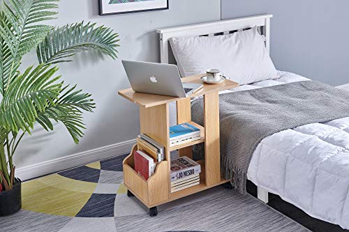 KMAYA サイドテーブル 可移動デスク キャスター付き おしゃれ ベッドサイドテーブル コの字型デザイン 実用的