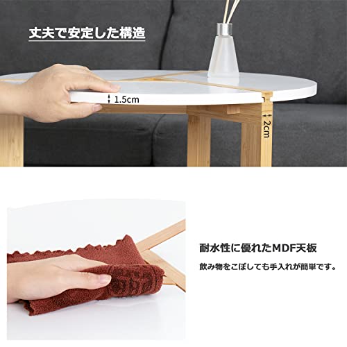 unho サイドテーブル 丸 小さめ ローテーブル 幅40×高さ41cm ソファー ベッド横 コーヒーテーブル ナイトテーブ