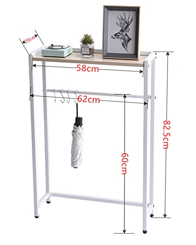 【コンソールテーブル仕様】:商品サイズ:約W62XD20XH82.5cm; 商品重量:約4kg; 内寸:約W58×D18×H80cm;品質表示:本体 : スチール(粉体塗装);天板 : 天然木化粧繊維板(ラッカー塗装);耐荷重:天板 :約30kg; バー ::約15kg;フック1つあたり :約3KG。