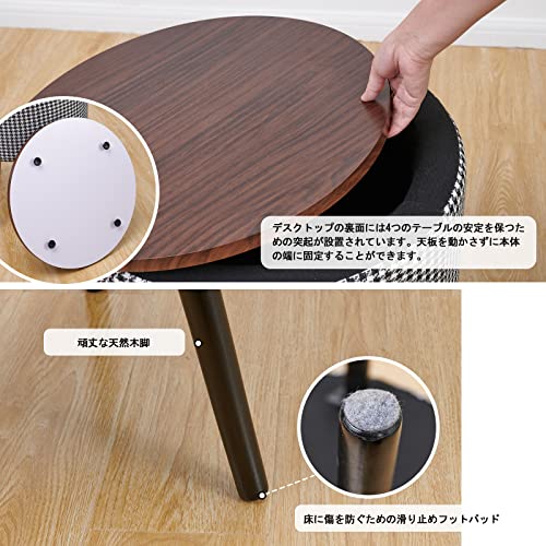 【サイズと材質】: 使用時: 直径50x高さ58cm 内部スペース:直径40x高さ20cm。木製の構造はテーブルを非常に強くさせる。テーブルの内部には通気性生地が使用され、臭気の発生を効果的に防止できます。エレガントで落ち着いた色はどんなスタイルの家具にも似合います。