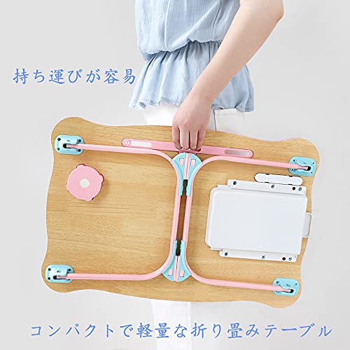 折り畳みテーブルパソコンデスク座卓 ベッドテーブル ローテーブル 凹溝付(USB読書灯とファンが付属してい