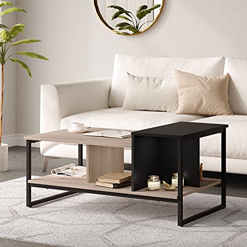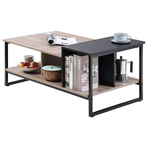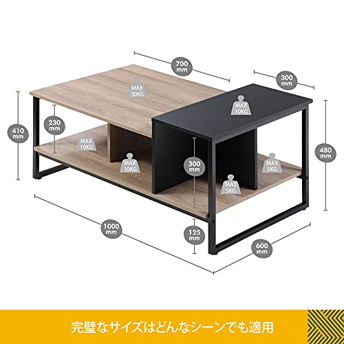 【ユニークマッチ】HOMOOI センターテーブルは様々な家具合わせやすいよう、素材はヴィンテージオーク木紋と黒を組み合わせ、パーソナライズされたデザインです。スチールと木の組み合わせが全体として使用され、全体的な荷重にしっかり耐えられでき、お手入れも簡単、長くお使いいた