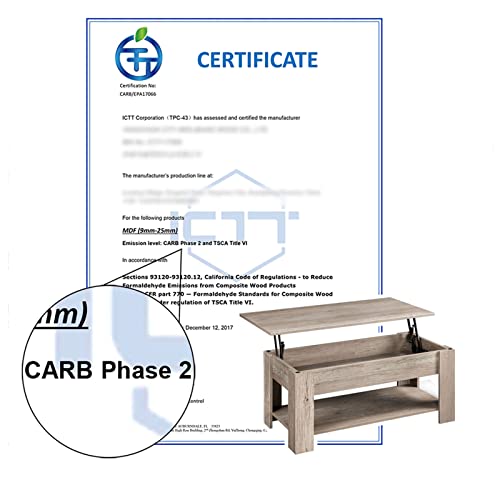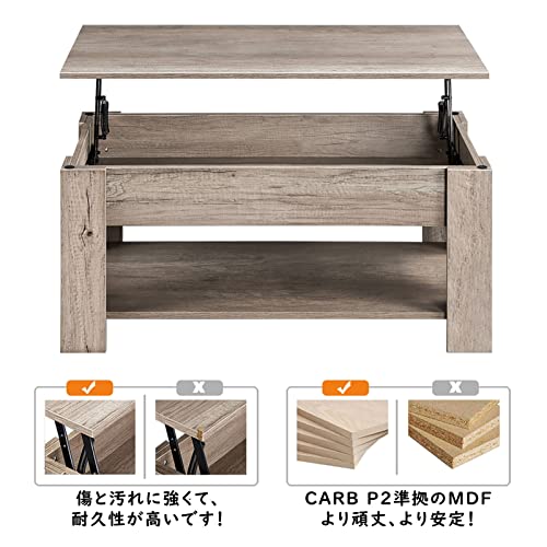 頑丈なテーブル構造:リフトトップコーヒーテーブルは、耐水性ベニヤで仕上げられたCARBP2準拠のMDFで構成されていま