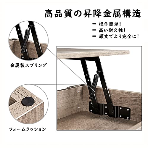 リフトトップデザイン:このコーヒーテーブルのテーブルトップは、快適な高さまで簡単に持ち上げることができ、ソファに座っているときに広々としたワークスペースやダイニング面を作成できます。頑丈な金属製のメカニズムにより、スムーズで簡単な操作が可能です。