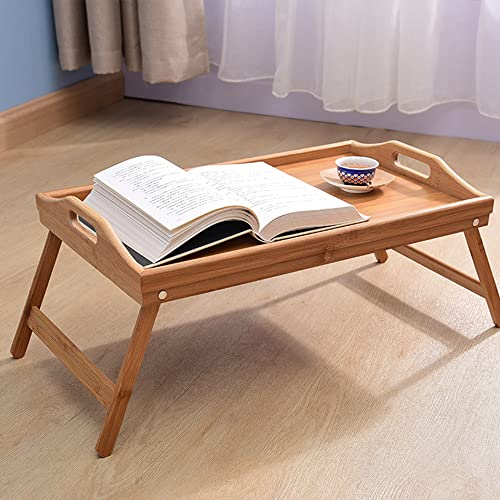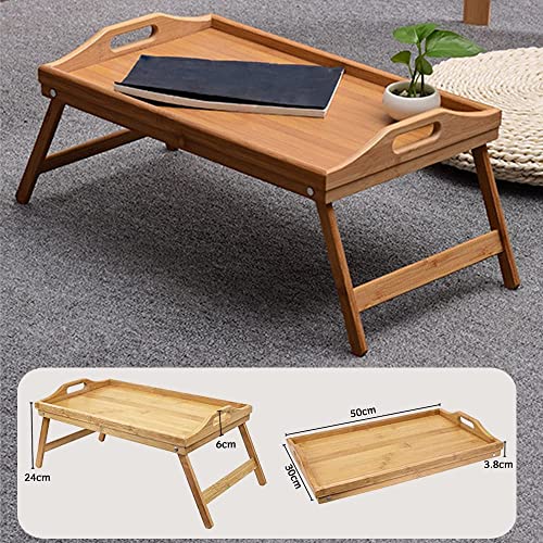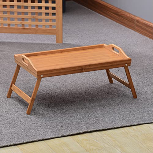 QINNKJIA 竹製 ローテーブル 折りたたみ式 ベッドテーブル 多機能 ちゃぶ台 座卓 トレーテーブル ハンドル付き