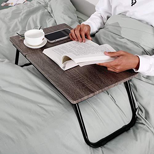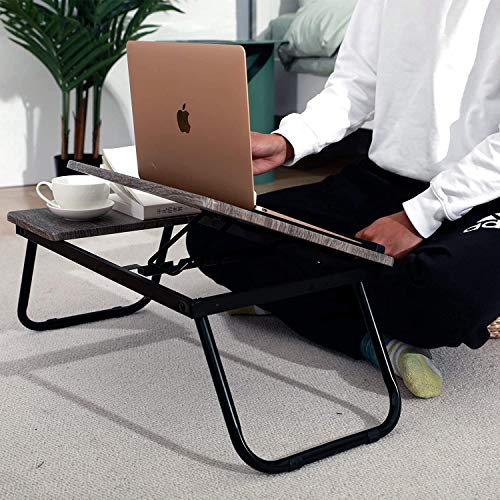 KAIDA ノードパソコンテーブル ベッドテーブル ベッド机 折りたたみミニテーブル ちゃぶ台 角度調節可能 木目