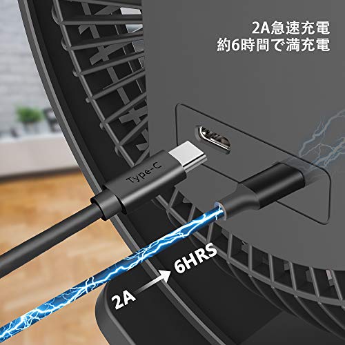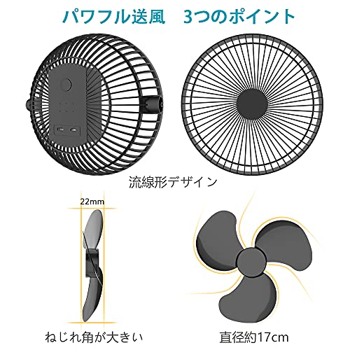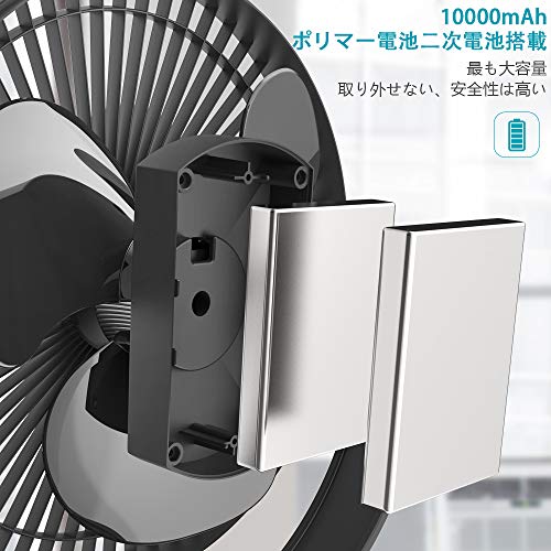 充電式クリップ扇風機 10000mAh電池内蔵 卓上扇風機 直径17cm大型ファン 風量4段階調整 強風 MicroUSB・type-C端子搭