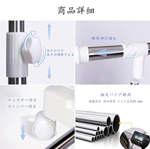 | 商品名 | ハンガーラック シングル パイプハンガー 梅雨対策 物干しスタンド キャスター 棚付き 縦横伸縮タイプ 太パ |