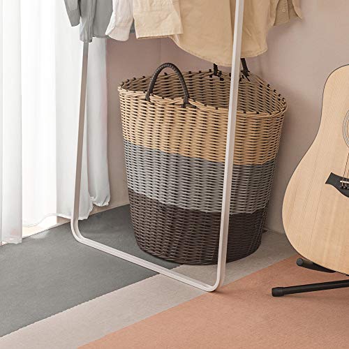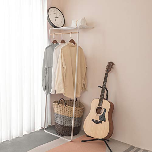 「抜群な収納力」三つの収納スペースが活用できます。パイプ部分はワンーピース、洋服、コートなど様々の衣類が十分に掛けられます。上の棚にはバッグと帽子など小物が一緒に収納できるし、植物や好みの絵等も飾れて部屋をきれいに見えます。下には46cm幅の空き空間があるので、収納ボークス、カゴを置けば、また収納スペースとして使えます。