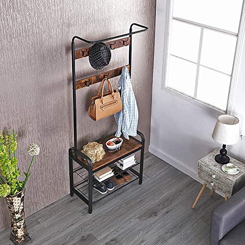 CJMM 3-in-1コートラック クローク シート付き靴ラック 8つの取り外し可能なフック付きハンガー ベンチ 2つのグ
