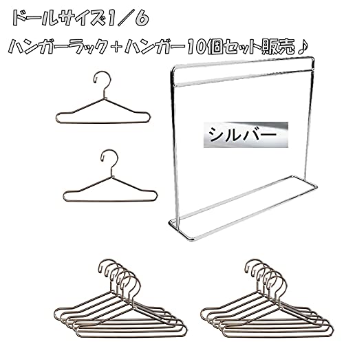ドール服 ハンガーラック ハンガー10個セット 人形用 1/6 BJD 着せ替え 人形服 衣類ラック (02 シルバー)