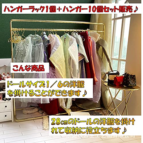 6分の1 ドール服 用 ハンガーラック&ハンガー10個セット販売!人形用 1/6 BJD 着せ替え 人形服 衣類ラックに