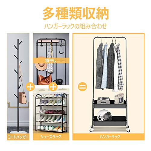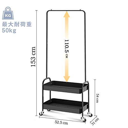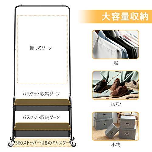 | 商品名 | キングラック(KINGRACK) ハンガーラック 幅56cm 耐荷重30kg キャスター付き バスケット2段 衣類収納 組立品 (ブラ |