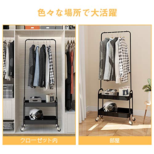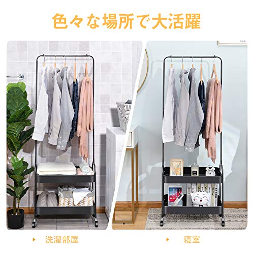 キングラック(KINGRACK) ハンガーラック 幅56cm 耐荷重30kg キャスター付き バスケット2段 衣類収納 組立品 (ブラ
