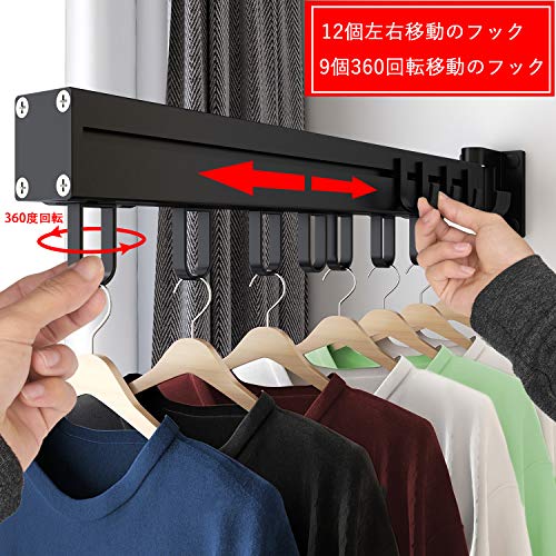 物干しラック 室内 壁付け 物干し 21個左右可動フック 180°回転 折り畳みハンガーラック 服掛けラック タオル