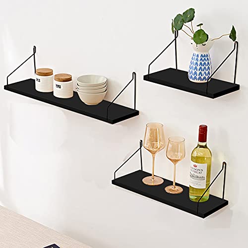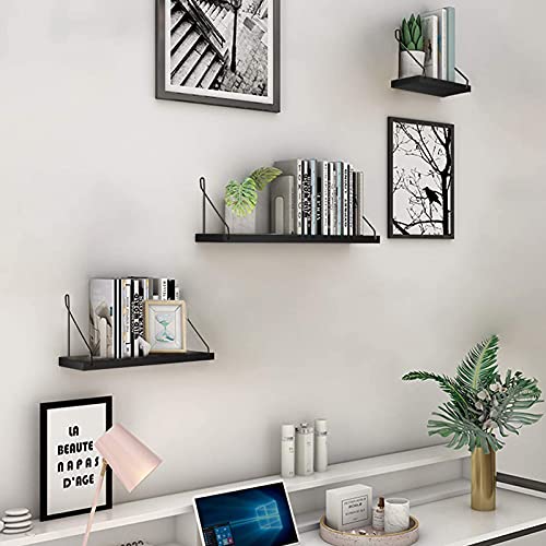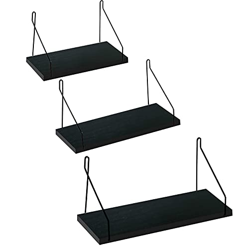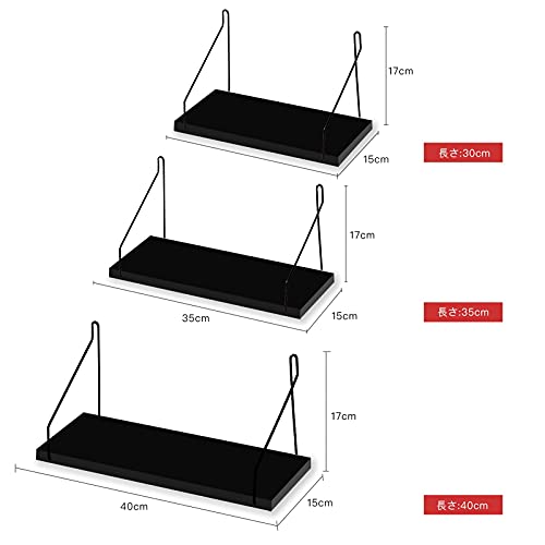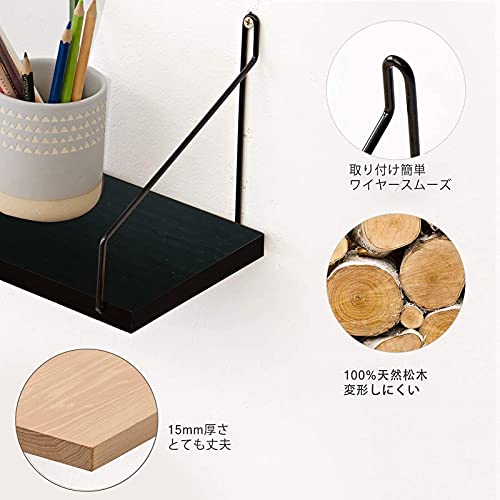 ウォールシェルフ 天然木 壁掛け棚 取付簡単 本棚 DIY 木製 飾り棚 シンプル ワイヤー付け 収納便利 (ブラック,