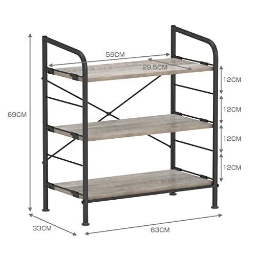 NEKOU オープンラック オープンシェルフ 木製 収納ラック 3段 高さ調節可能 キッチンラック 組立簡単 可動棚 デ
