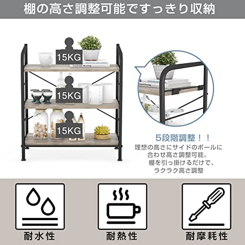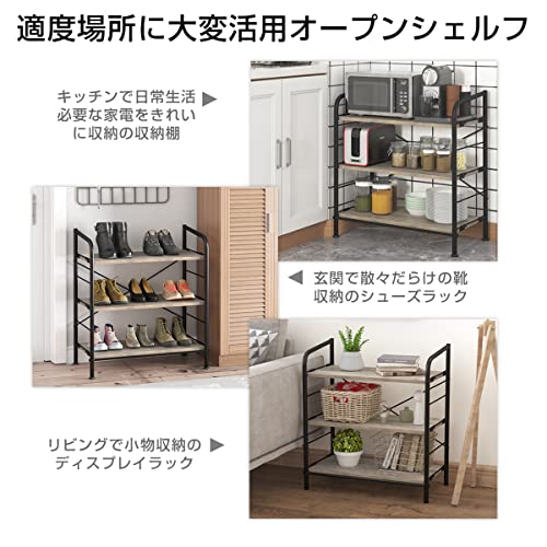 | 商品名 | NEKOU オープンラック オープンシェルフ 木製 収納ラック 3段 高さ調節可能 キッチンラック 組立簡単 可動棚 デ |
