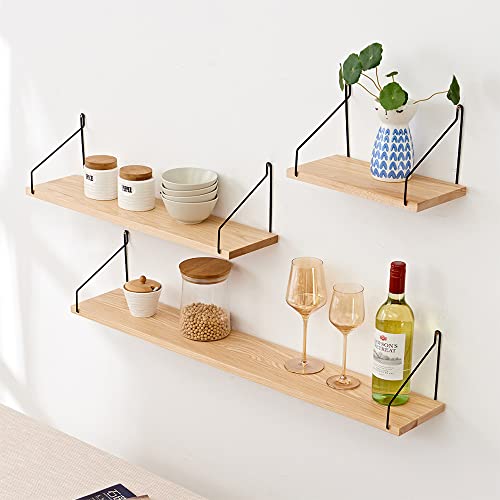 ウォールシェルフ 天然木 壁掛け棚 取付簡単 本棚 DIY 木製 飾り棚 シンプル ワイヤー付け 収納便利 (ナチュラ