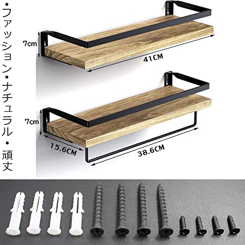【製品仕様&組み立てと取り外しが簡単】サイズ:長さ41奥幅15.6高さ7cm 2個セット パッケージリスト:壁掛け棚x2、長いネジx4、短いネジx4、膨張ピンx4、取り付け説明書x1。このウォールシェルフは二重吊り穴の設計を採用しており、ただ電気ドリルを使用して壁に2つの穴を開けて取り付けます,壁へのダメージが少ない。それと、タオル掛けは壁に取り付けられたフローティングシェルフに固定されていません。棚に取り付けたり、壁に取り付けたりすることで活用できます。