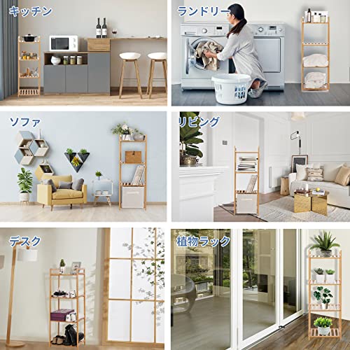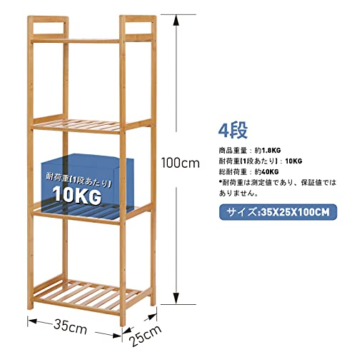 PACHIRAAE-Commerce オープンラック 4段 収納棚 オープンシェルフ 天然竹製 耐荷重40kg 収納ラック 和室 園芸 キッチ