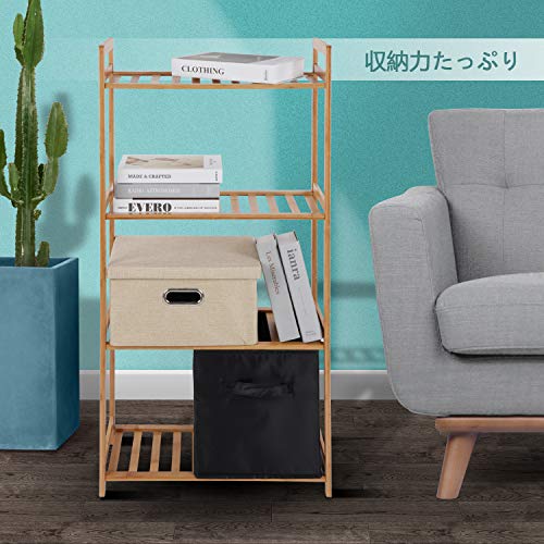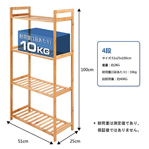オープンシェルフ・ラック 4段 収納棚 天然竹製 耐荷重40kg 収納ラック 浴室 園芸 キッチン 収納 ラック 飾り棚