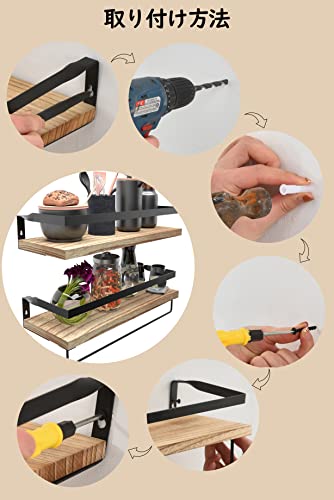 【製品仕様&組み立てと取り外しが簡単】サイズ:長さ41奥幅15.6高さ7cm 2個セット パッケージリスト:壁掛け棚x2、長いネジx4、短いネジx4、膨張ピンx4、取り付け説明書x1。このウォールシェルフは二重吊り穴の設計を採用しており、ただ電気ドリルを使用して壁に2つの穴を開けて取り付けます,壁へのダメージが少ない。それと、タオル掛けは壁に取り付けられたフローティングシェルフに固定されていません。棚に取り付けたり、壁に取り付けたりすることで活用できます。
