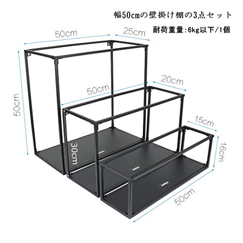 【お得な壁付け棚】3つの高さ(50cm、30cm、16cm)が含まれており、幅広く使える壁掛け棚の3点セットです