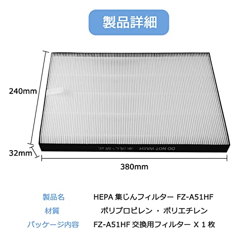 【HEPAフィルター 1枚入】空気清浄機交換用集じんフィルター FZ-A51HF、互換品です。
