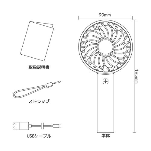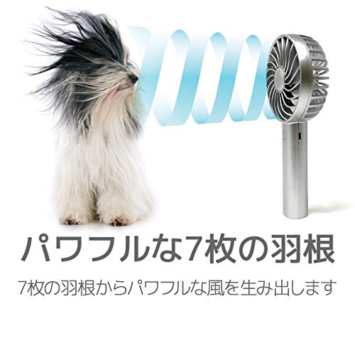 パワフルな7枚の羽根。持ち運びに便利。最大9時間利用可能。