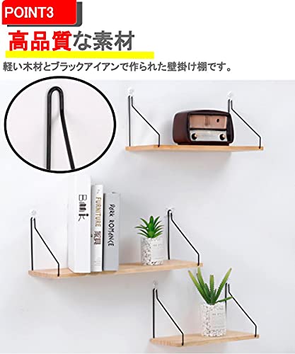 【高品質な素材】軽い木材とブラックアイアンで作られた壁掛け棚です。壁の穴が目立たないので安心です。