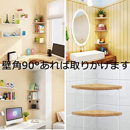 竹製コーナー壁 棚 ウォールシェルフの仕様:サイズ:幅280mm×厚さ13mm×半径280mm、100%天然モウソウチクラックはエコ材料で、防水、防潮、防カビ、防腐性が高く、そして変形や亀裂しにくく、無毒です。子供部屋に取りつけしても安心。シンプルでスタイリッシュで頑丈かつ耐用性が優れてます、更に20KG以上の耐荷重ができます!