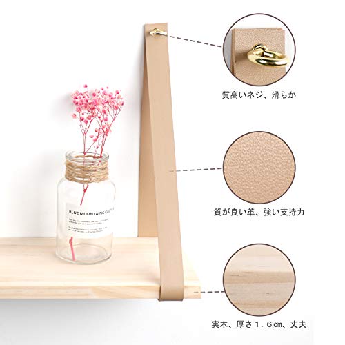 ヘビーデューティー:厚さ1.6cmのパインボードと高品質のレザーストラップにより、ウォールシェルフは強力な耐荷重性を持ち、日常生活の使用要求を満たします。