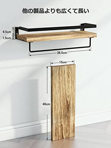 【商品仕様】おしゃれな壁掛け棚の2個セットです。ボードのサイズ:40×15×1.5cm (幅×奥行き×厚さ) ガードレールのサイズ:40×15×8cm (幅×奥行き×高さ) タオルバーのサイズ:36.5×5.5cm(幅×高さ) 素材:桐ボード+鋳鉄 耐荷重:10kg