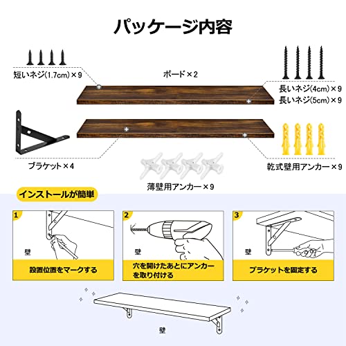 HASONA ウォールシェルフ 壁掛け棚 (防水 防カビ 壁 棚 ラック 幅58cm×奥行18cm) 防虫 滑らか 2個セット おしゃれ