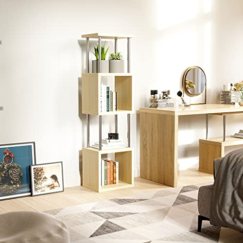 Bestier オープンシェルフ オープンラック S字 ディスプレイラック 本棚 収納棚 (5段, オーク)