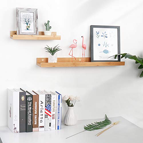 YOYAI S 壁掛け棚 飾棚 壁付け棚 ウォールシェルフ 壁収納 一文字式 天然楠竹使用 (33*12*5, ナチュラル)