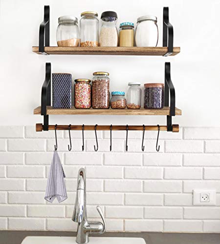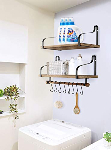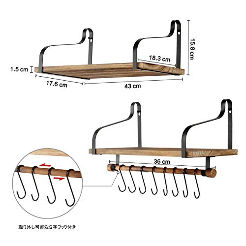 HofferRuffer ウォールラック 壁面収納ラック 木製 壁掛け飾り棚 ネジ付き オシャレ ウォールシェルフ フック付