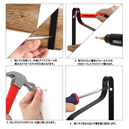 おしゃれな壁ラック:スチールフレームで支えるデザインウォールシェルフで、棚板は自然な風合いが楽しめる天然木です。木材独特の風合いとアイアンラックの質感を完璧に融合して、様々なインテリアイメージにマッチし、アンティークな雰囲気を醸し出します。