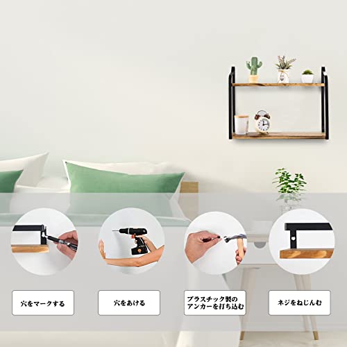 ウォールシェルフ 2段 収納棚 オープンラック 壁掛け棚 本棚 おしゃれ 雑貨収納 壁面収納 簡単取り付け 整理