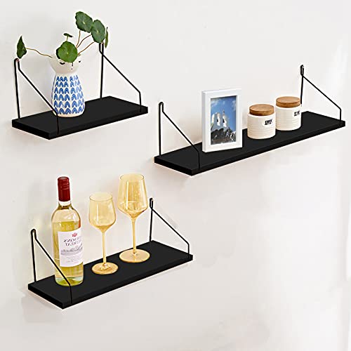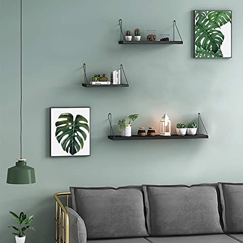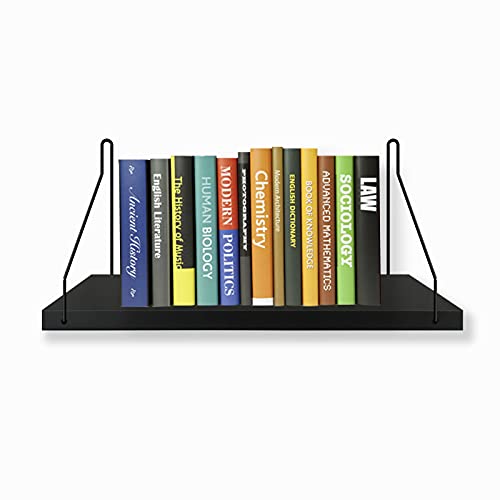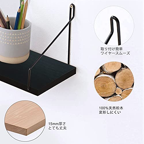 ウォールシェルフ 天然木 壁掛け棚 取付簡単 本棚 DIY 木製 飾り棚 シンプル ワイヤー付け 収納便利 (ブラック,