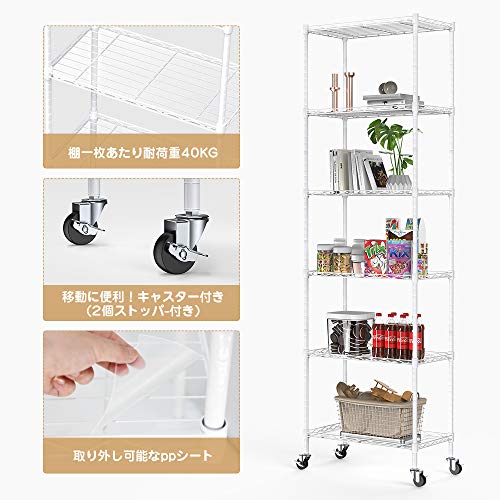 NATRKE メタルラック 6段 ホワイト スチールラック スチールシェルフ ワイヤーラック 大容量 防錆 傷つきにくい