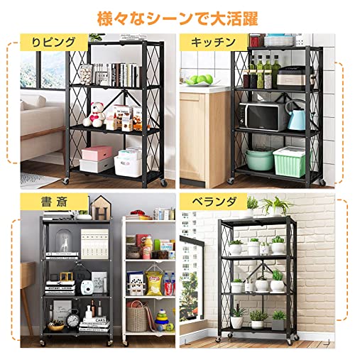 NEKOU メタルラック 折りたたみラック 4段 大容量 収納ラック キャスター付き キッチンラック レンジラック 防