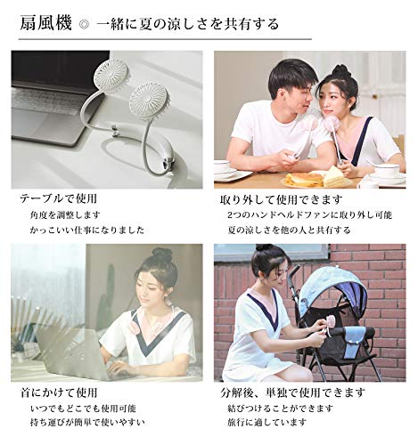 ?多功能の小型扇風機:このファンは首掛け、腰掛け、腕、卓上置くで使用可能です。腰掛け/首掛け/腕/卓上扇風機の多用性を叶えています。注意:ベビーカーでの使用は禁止されています。
