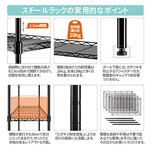 | 商品名 | スチールラック 収納 棚 ラック メタル スチール シェルフ キッチン収納 ワイヤーラック 55×30×160cm ブラック |
