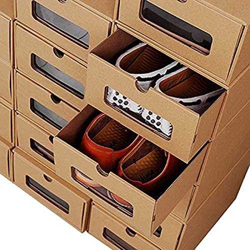 【材質とサイズ】高品質のクラフト紙(透明窓部分はプラスチック)男性用外寸(約)W幅23.5×D奥行35×H高さ13.5cm(1個)、紙の厚さがあり、内寸は少し小さいのでご注意ください。この男性用サイズは女性のフラットシューズや普通の子供靴にも通用していますが、女性のハイヒールのはどうぞハイヒール専用のほうを選びなさい。